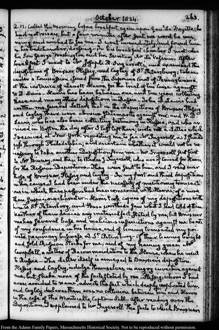 John Quincy Adams diary 35, 25 January 1823 - 31 October 1826, 5 November 1828, and 15 August 1844, page 263