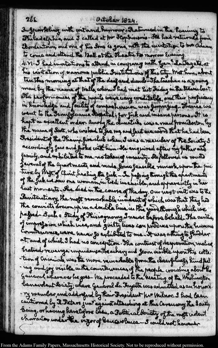 John Quincy Adams diary 35, 25 January 1823 - 31 October 1826, 5 November 1828, and 15 August 1844, page 266