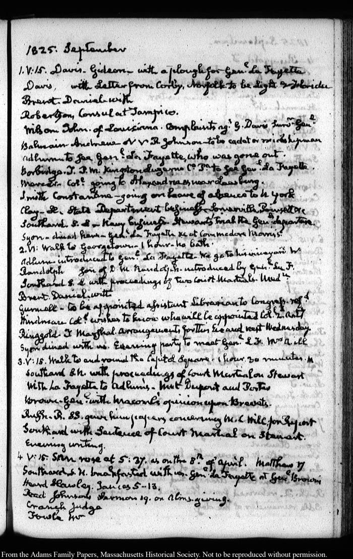 View full, authoritative transcriptions with page images of the diaries at John Quincy Adams Digital Diary part of the Primary Source Cooperative at the MHS.