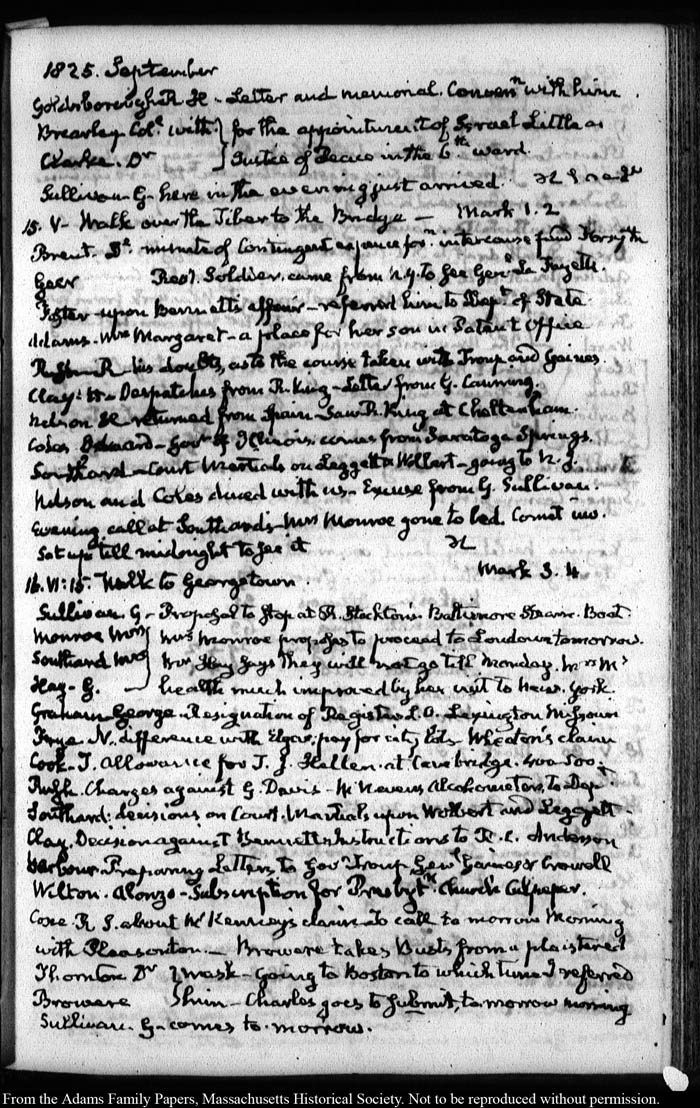 View full, authoritative transcriptions with page images of the diaries at John Quincy Adams Digital Diary part of the Primary Source Cooperative at the MHS.