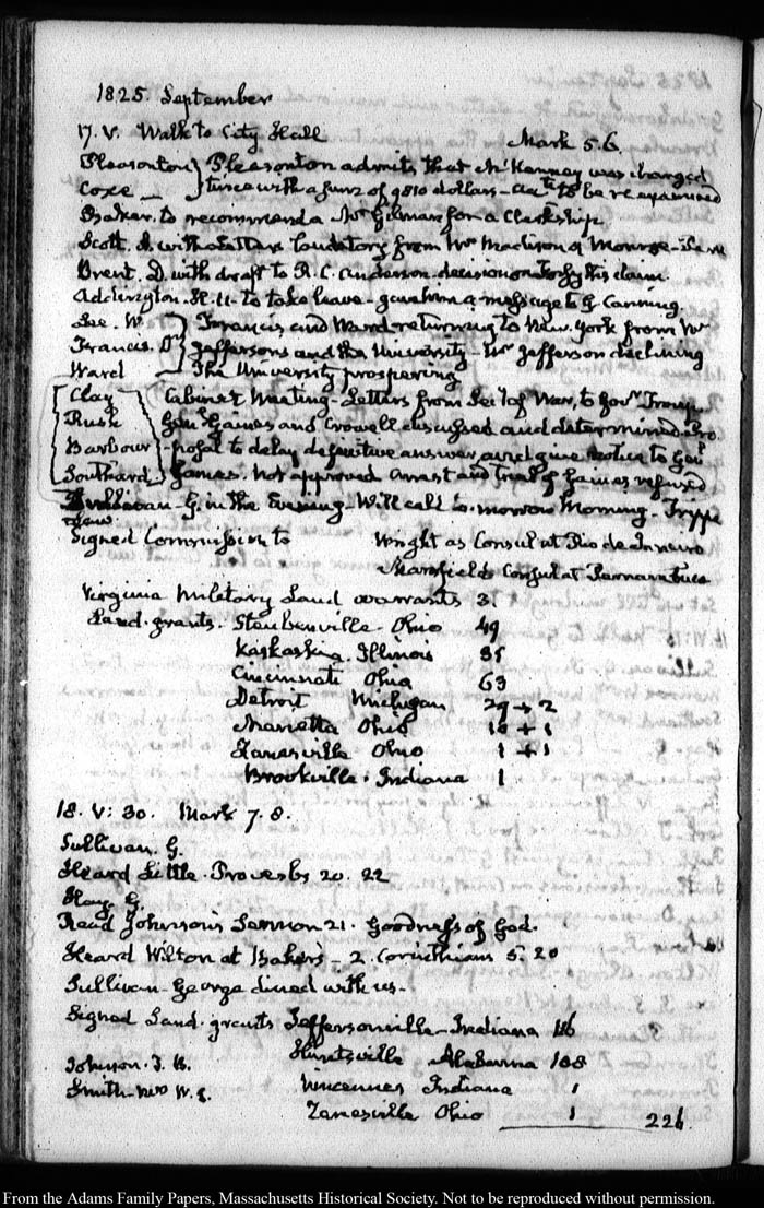 View full, authoritative transcriptions with page images of the diaries at John Quincy Adams Digital Diary part of the Primary Source Cooperative at the MHS.