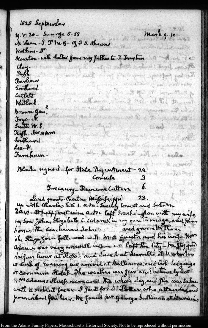 View full, authoritative transcriptions with page images of the diaries at John Quincy Adams Digital Diary part of the Primary Source Cooperative at the MHS.