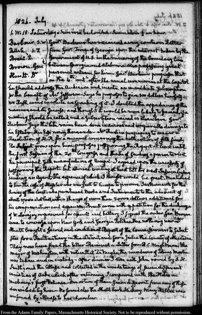 View full, authoritative transcriptions with page images of the diaries at John Quincy Adams Digital Diary part of the Primary Source Cooperative at the MHS.