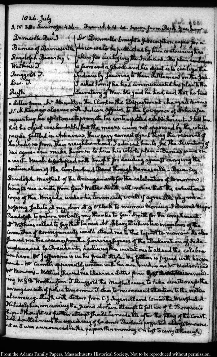 View full, authoritative transcriptions with page images of the diaries at John Quincy Adams Digital Diary part of the Primary Source Cooperative at the MHS.
