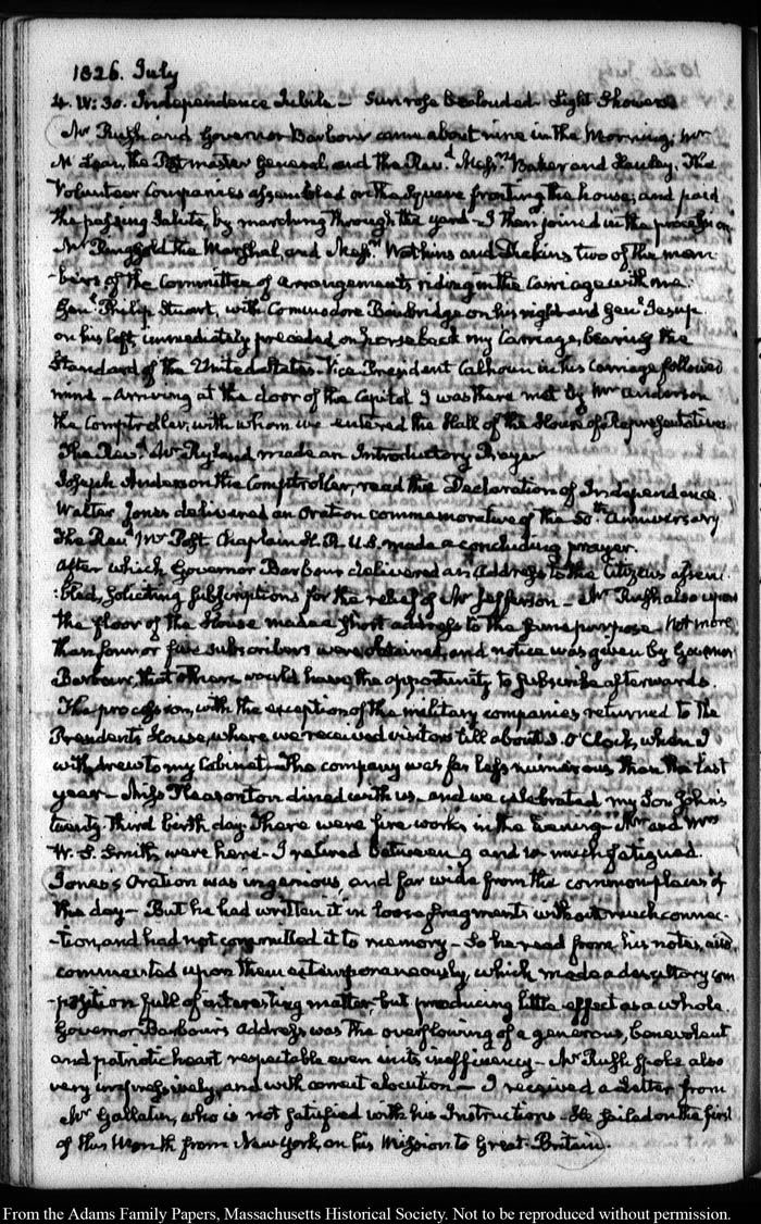 View full, authoritative transcriptions with page images of the diaries at John Quincy Adams Digital Diary part of the Primary Source Cooperative at the MHS.