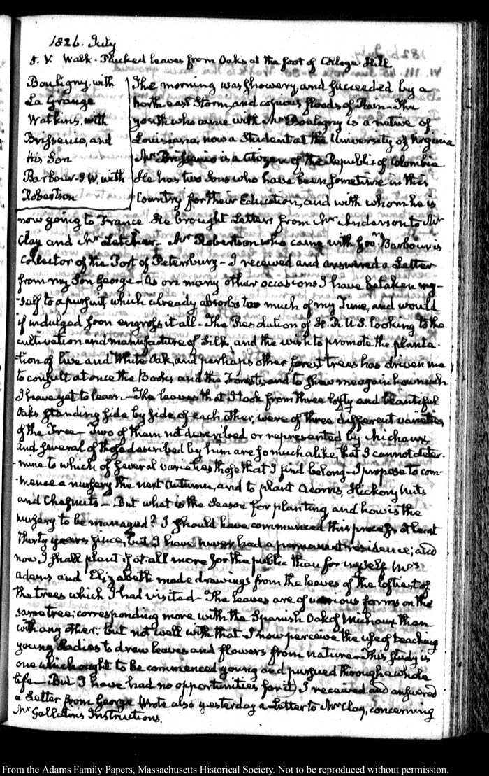 View full, authoritative transcriptions with page images of the diaries at John Quincy Adams Digital Diary part of the Primary Source Cooperative at the MHS.