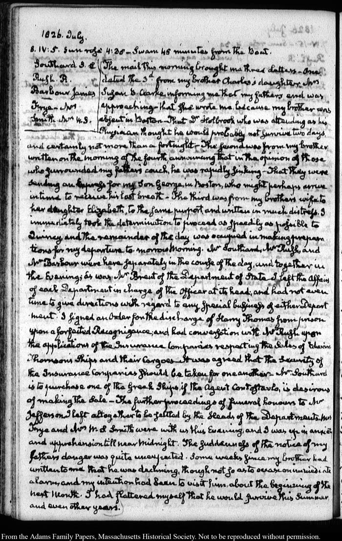 View full, authoritative transcriptions with page images of the diaries at John Quincy Adams Digital Diary part of the Primary Source Cooperative at the MHS.