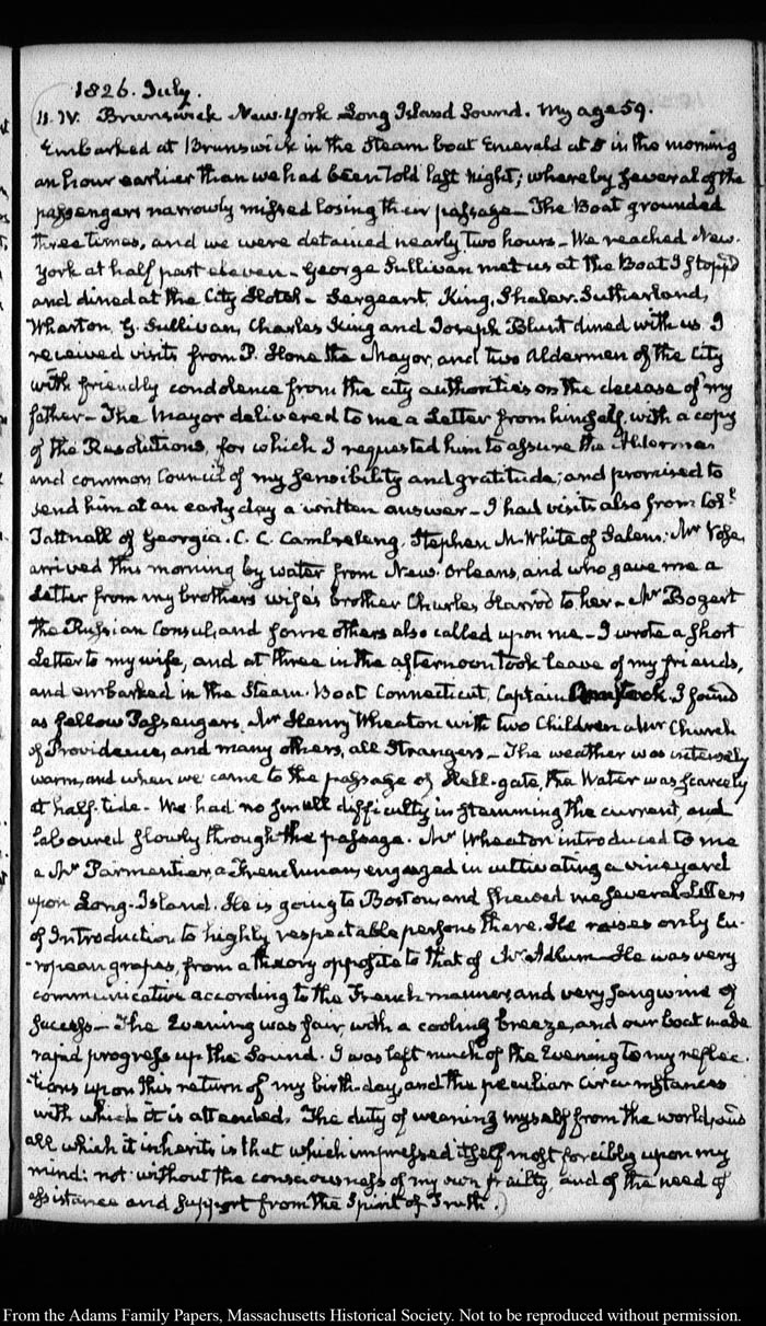 View full, authoritative transcriptions with page images of the diaries at John Quincy Adams Digital Diary part of the Primary Source Cooperative at the MHS.