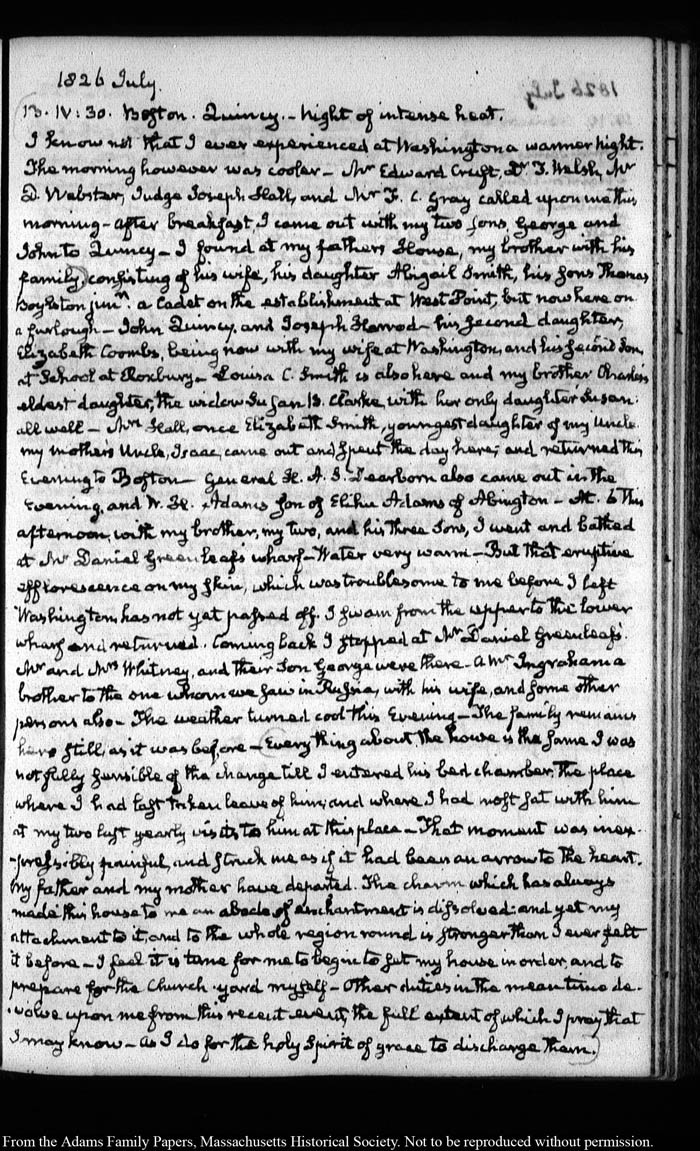 View full, authoritative transcriptions with page images of the diaries at John Quincy Adams Digital Diary part of the Primary Source Cooperative at the MHS.