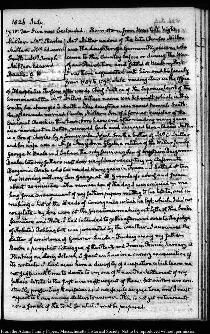 View full, authoritative transcriptions with page images of the diaries at John Quincy Adams Digital Diary part of the Primary Source Cooperative at the MHS.