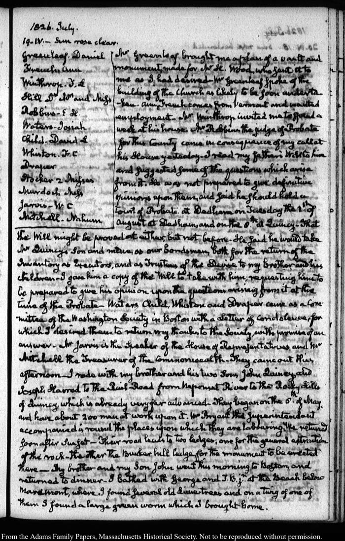 View full, authoritative transcriptions with page images of the diaries at John Quincy Adams Digital Diary part of the Primary Source Cooperative at the MHS.