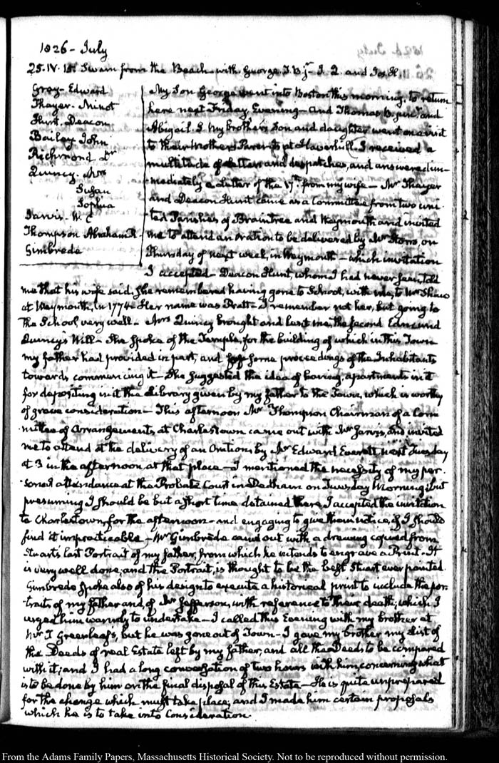 View full, authoritative transcriptions with page images of the diaries at John Quincy Adams Digital Diary part of the Primary Source Cooperative at the MHS.
