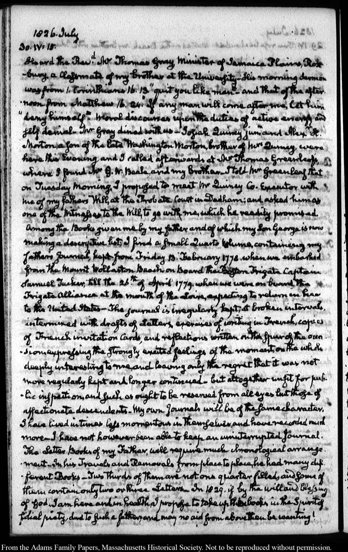 View full, authoritative transcriptions with page images of the diaries at John Quincy Adams Digital Diary part of the Primary Source Cooperative at the MHS.