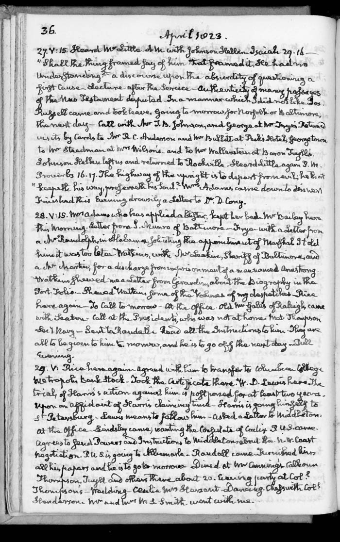 John Quincy Adams diary 35, 25 January 1823 - 31 October 1826, 5 November 1828, and 15 August 1844, page 36