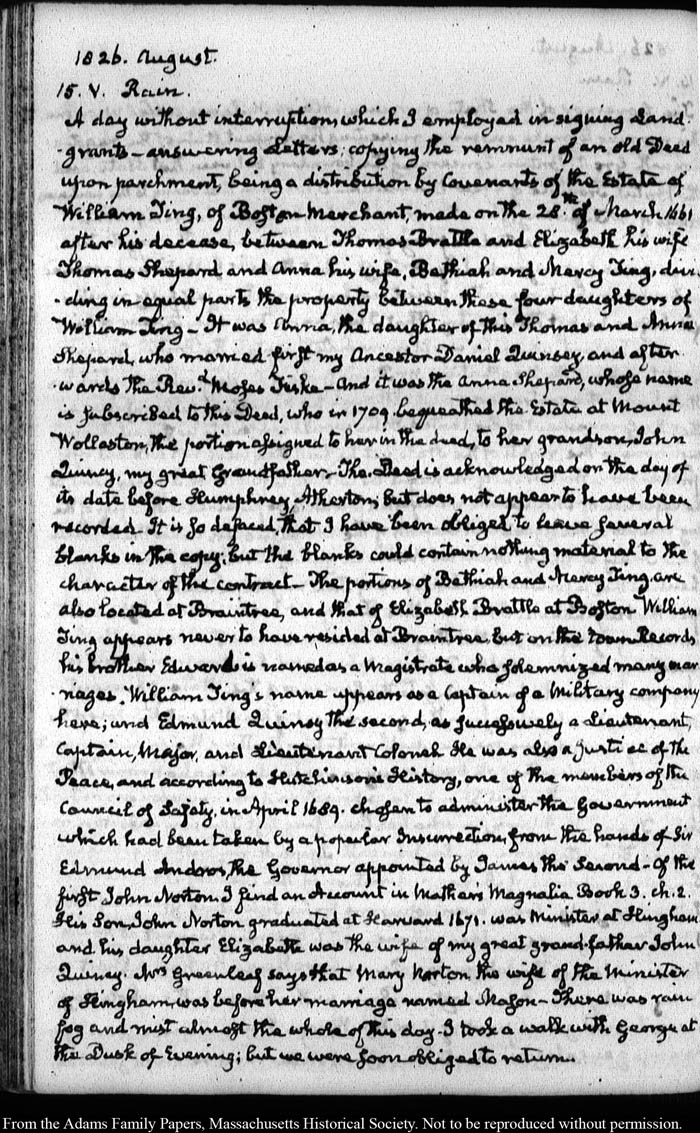 View full, authoritative transcriptions with page images of the diaries at John Quincy Adams Digital Diary part of the Primary Source Cooperative at the MHS.