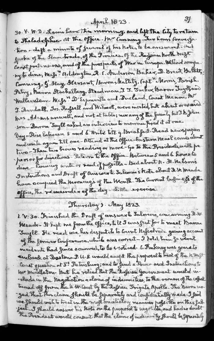 John Quincy Adams diary 35, 25 January 1823 - 31 October 1826, 5 November 1828, and 15 August 1844, page 37