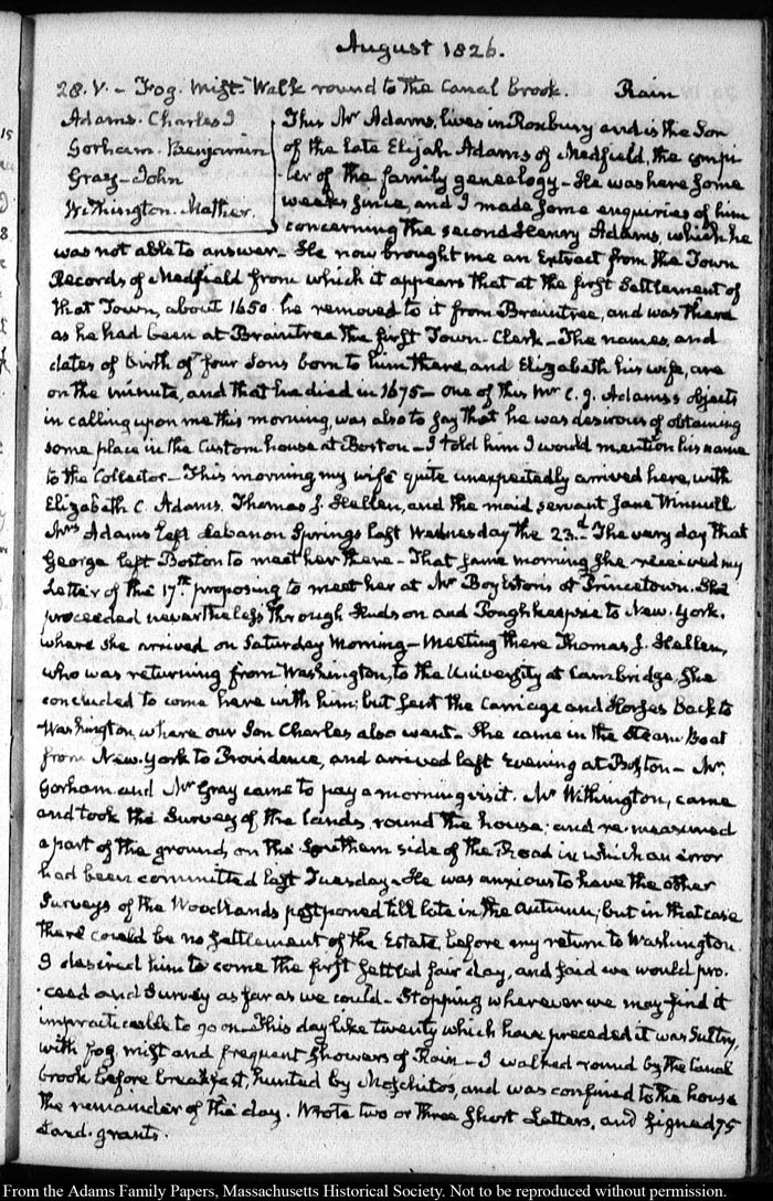 View full, authoritative transcriptions with page images of the diaries at John Quincy Adams Digital Diary part of the Primary Source Cooperative at the MHS.