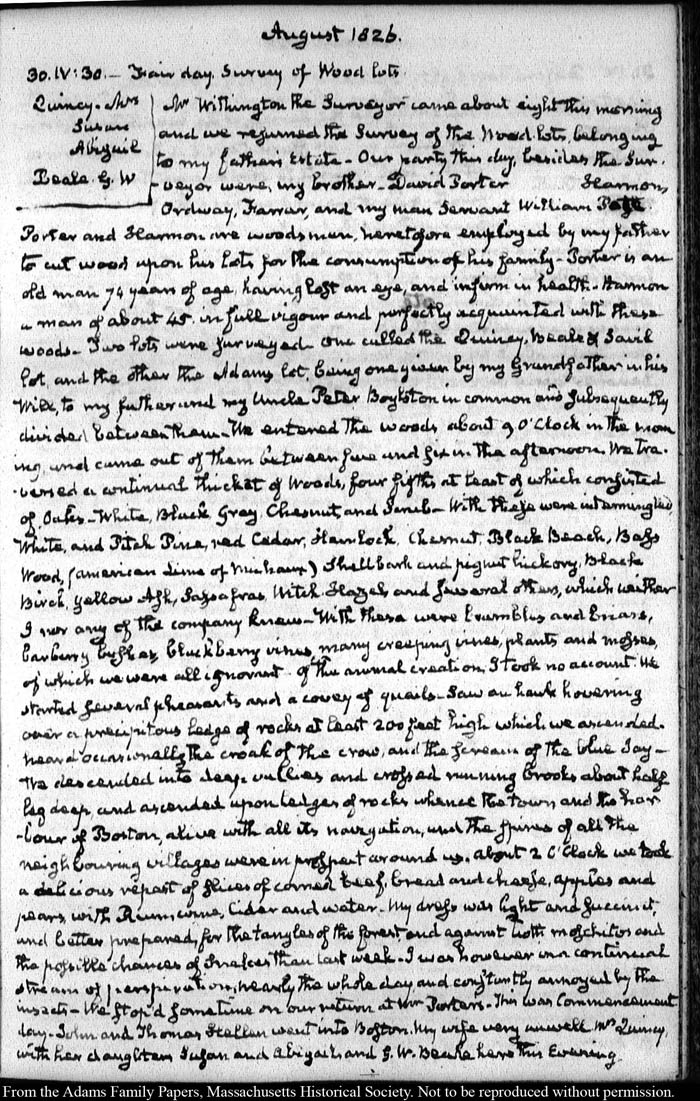 View full, authoritative transcriptions with page images of the diaries at John Quincy Adams Digital Diary part of the Primary Source Cooperative at the MHS.