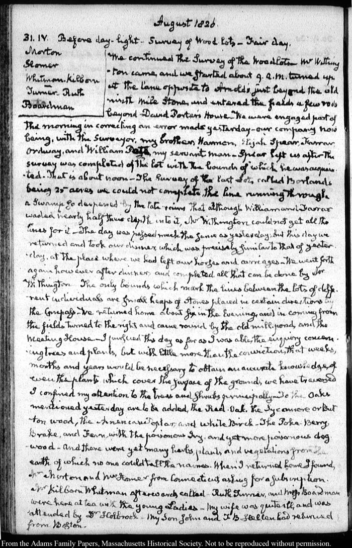 View full, authoritative transcriptions with page images of the diaries at John Quincy Adams Digital Diary part of the Primary Source Cooperative at the MHS.