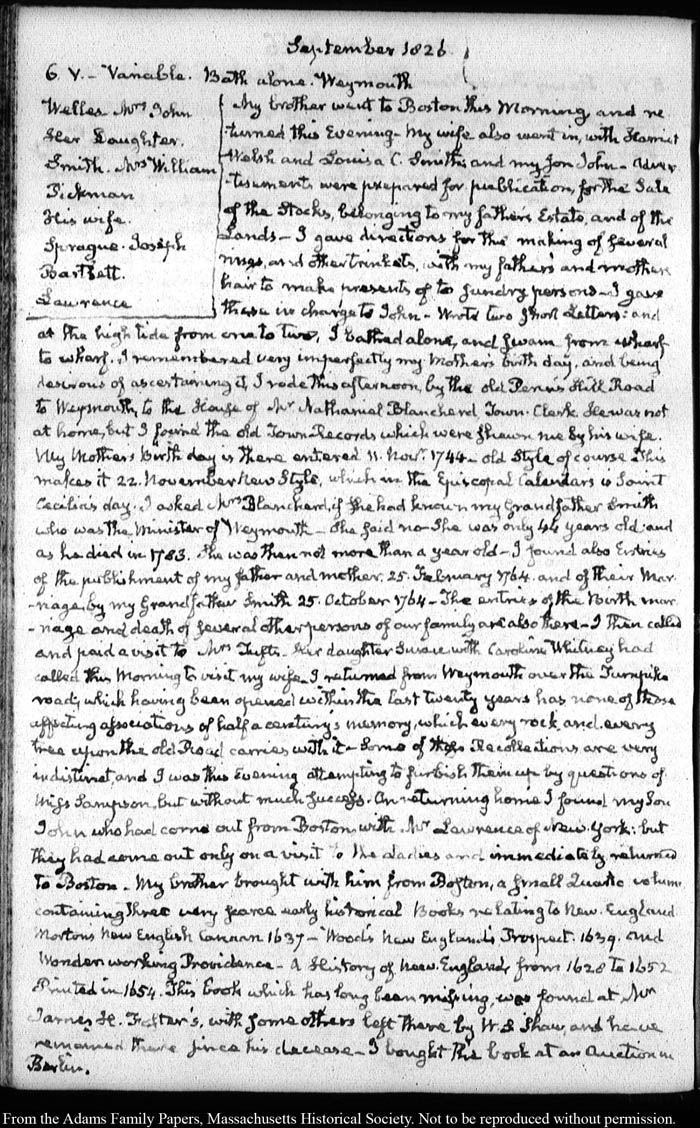 View full, authoritative transcriptions with page images of the diaries at John Quincy Adams Digital Diary part of the Primary Source Cooperative at the MHS.