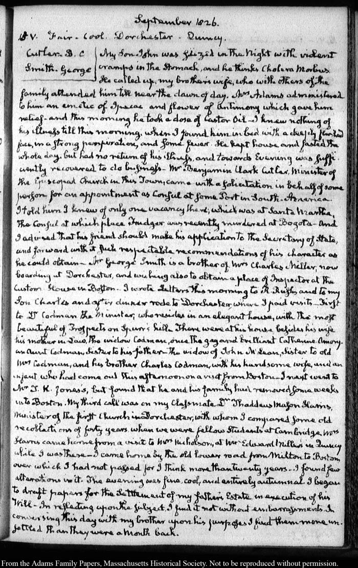 View full, authoritative transcriptions with page images of the diaries at John Quincy Adams Digital Diary part of the Primary Source Cooperative at the MHS.