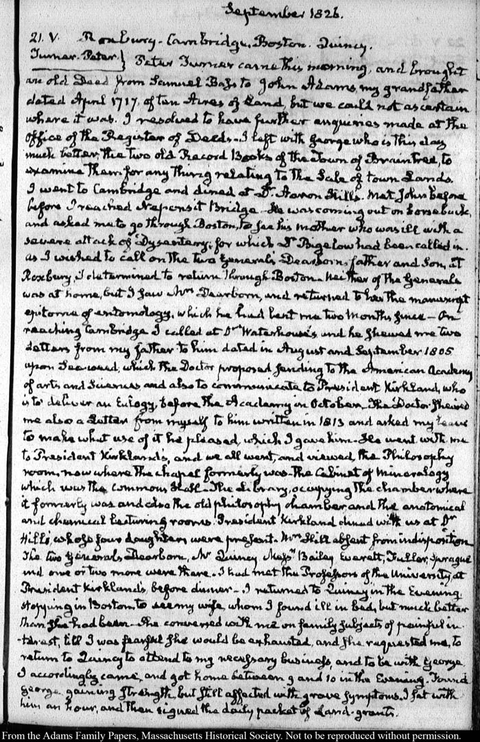 View full, authoritative transcriptions with page images of the diaries at John Quincy Adams Digital Diary part of the Primary Source Cooperative at the MHS.