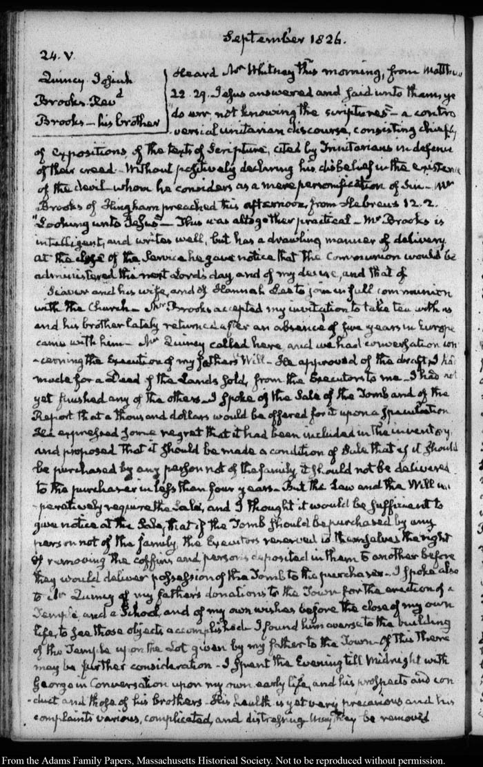 View full, authoritative transcriptions with page images of the diaries at John Quincy Adams Digital Diary part of the Primary Source Cooperative at the MHS.
