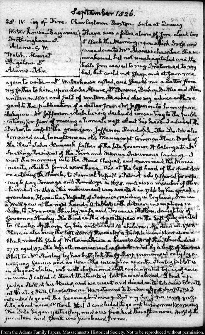 View full, authoritative transcriptions with page images of the diaries at John Quincy Adams Digital Diary part of the Primary Source Cooperative at the MHS.