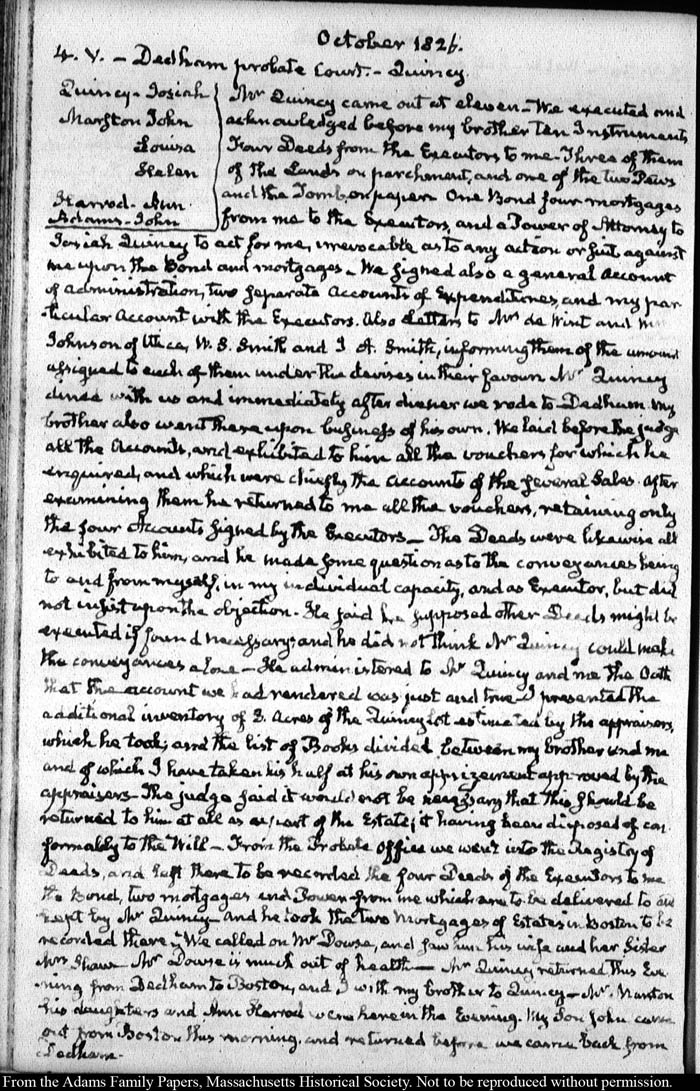 View full, authoritative transcriptions with page images of the diaries at John Quincy Adams Digital Diary part of the Primary Source Cooperative at the MHS.