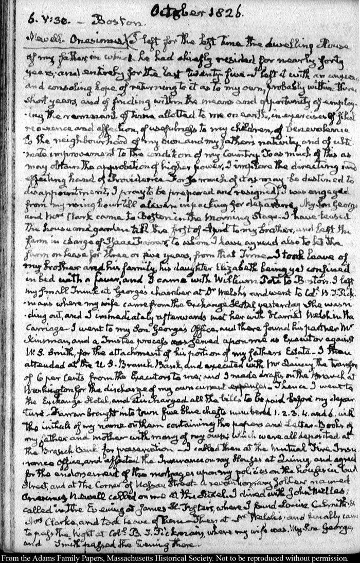 View full, authoritative transcriptions with page images of the diaries at John Quincy Adams Digital Diary part of the Primary Source Cooperative at the MHS.