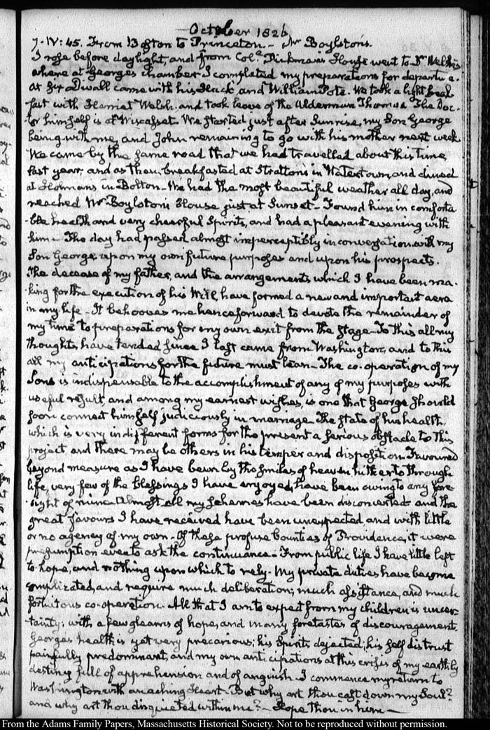 View full, authoritative transcriptions with page images of the diaries at John Quincy Adams Digital Diary part of the Primary Source Cooperative at the MHS.