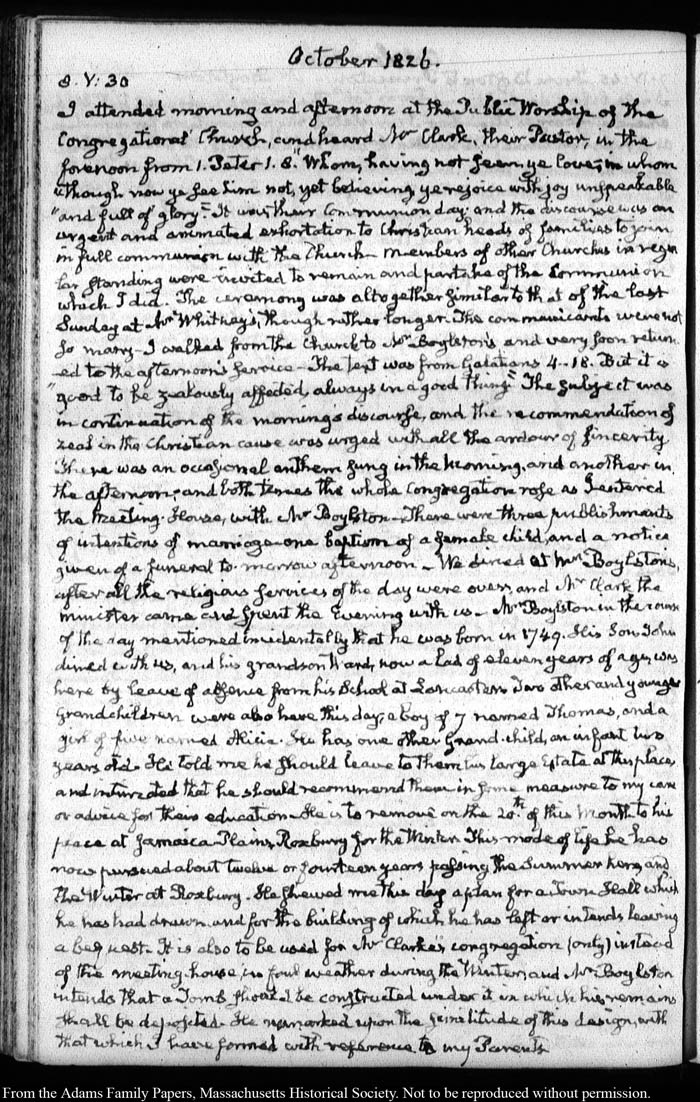 View full, authoritative transcriptions with page images of the diaries at John Quincy Adams Digital Diary part of the Primary Source Cooperative at the MHS.