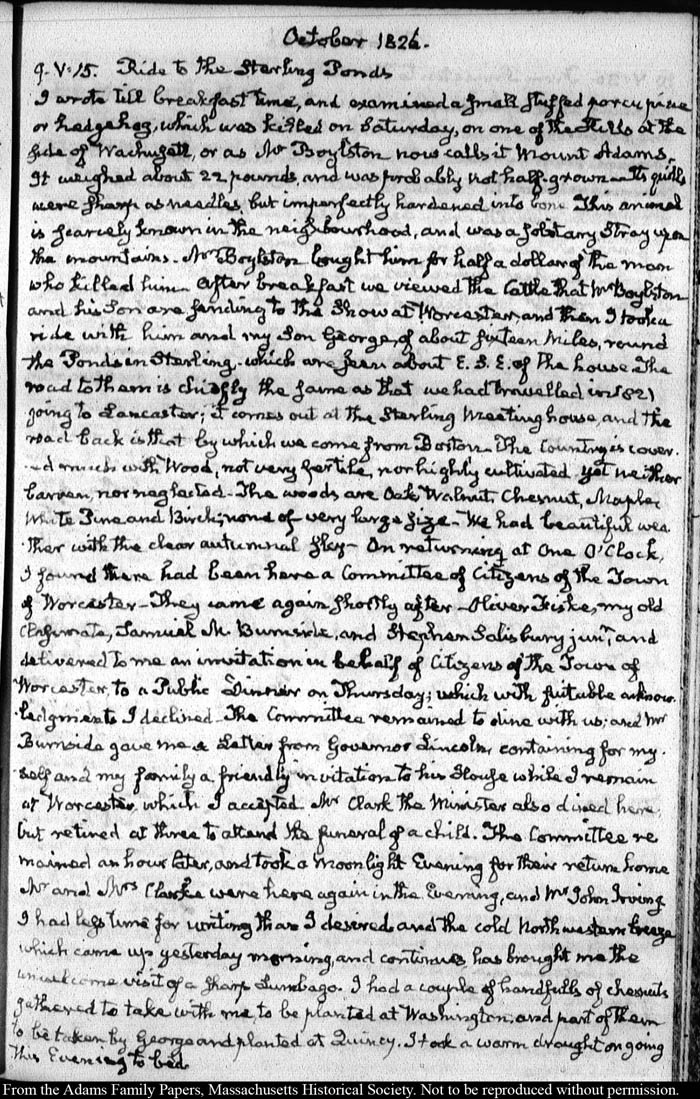 View full, authoritative transcriptions with page images of the diaries at John Quincy Adams Digital Diary part of the Primary Source Cooperative at the MHS.