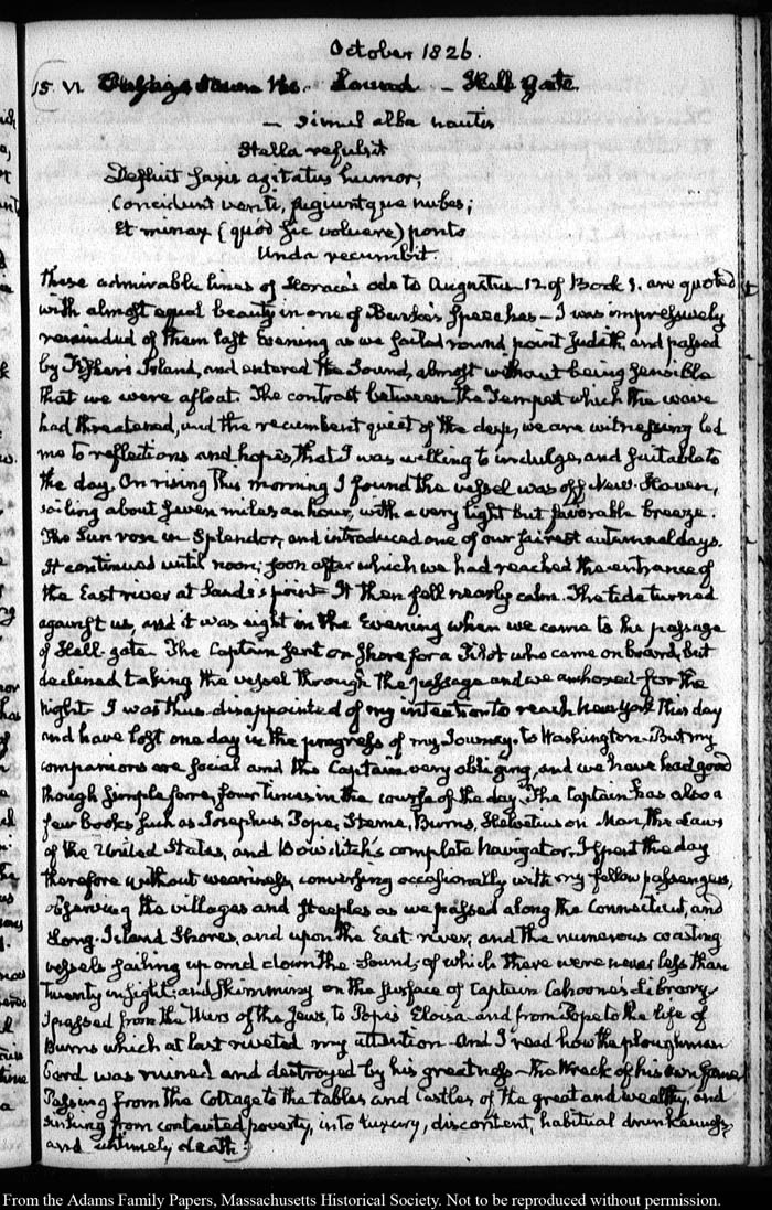 View full, authoritative transcriptions with page images of the diaries at John Quincy Adams Digital Diary part of the Primary Source Cooperative at the MHS.