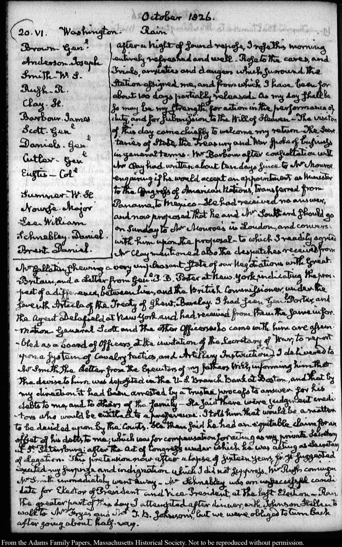 View full, authoritative transcriptions with page images of the diaries at John Quincy Adams Digital Diary part of the Primary Source Cooperative at the MHS.