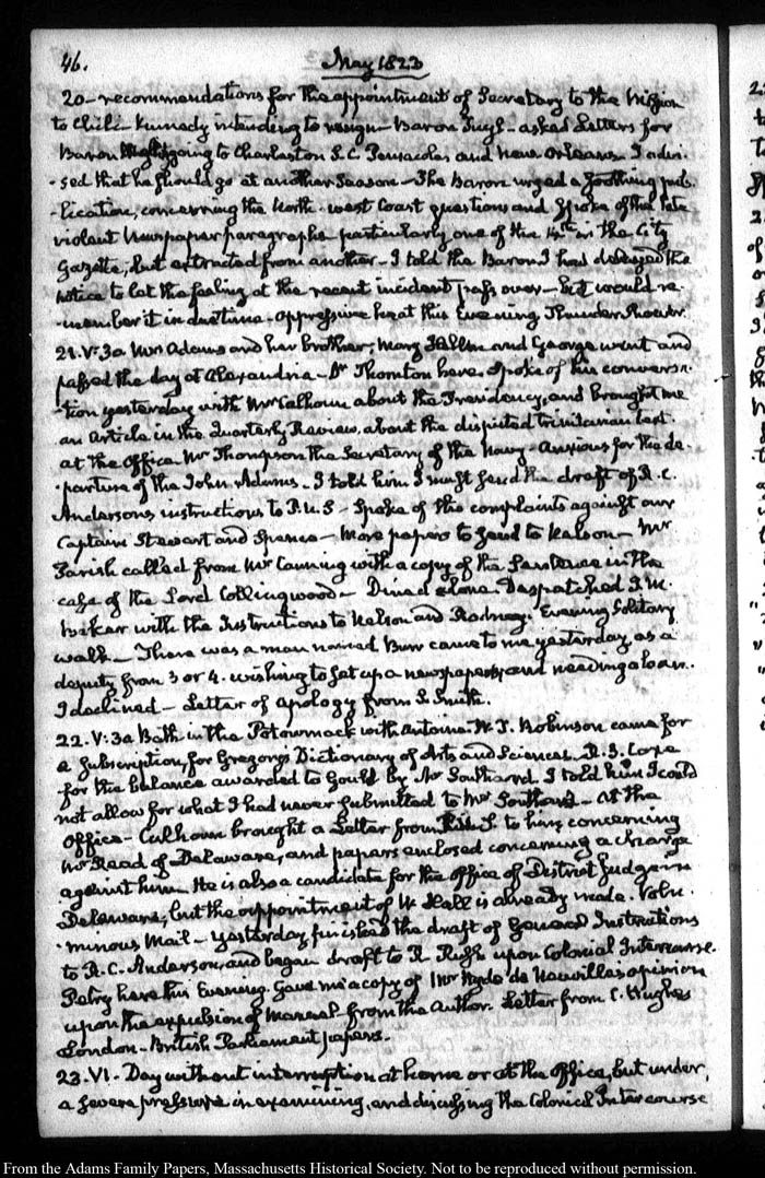 John Quincy Adams diary 35, 25 January 1823 - 31 October 1826, 5 November 1828, and 15 August 1844, page 46