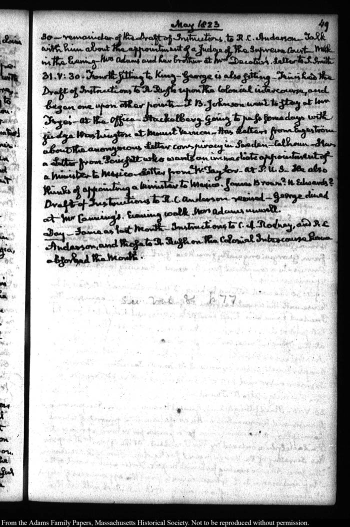 John Quincy Adams diary 35, 25 January 1823 - 31 October 1826, 5 November 1828, and 15 August 1844, page 49