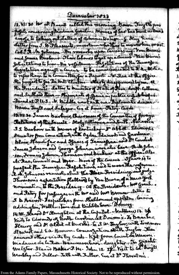 View full, authoritative transcriptions with page images of the diaries at John Quincy Adams Digital Diary part of the Primary Source Cooperative at the MHS.