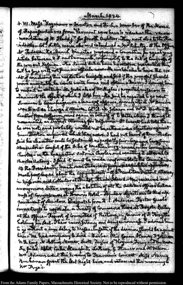 View full, authoritative transcriptions with page images of the diaries at John Quincy Adams Digital Diary part of the Primary Source Cooperative at the MHS.