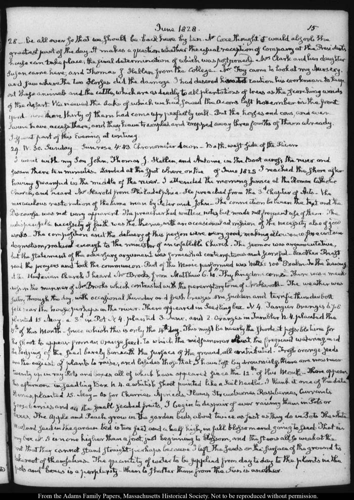 View full, authoritative transcriptions with page images of the diaries at John Quincy Adams Digital Diary part of the Primary Source Cooperative at the MHS.
