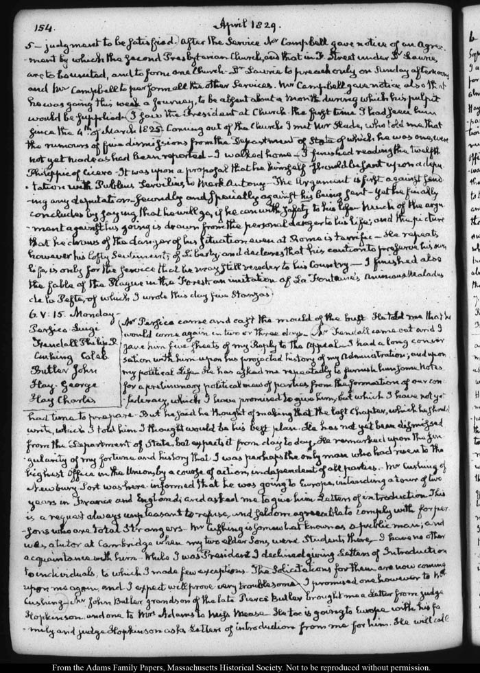 John Quincy Adams diary 36, 1 January 1825 - 30 September 1830, page 154