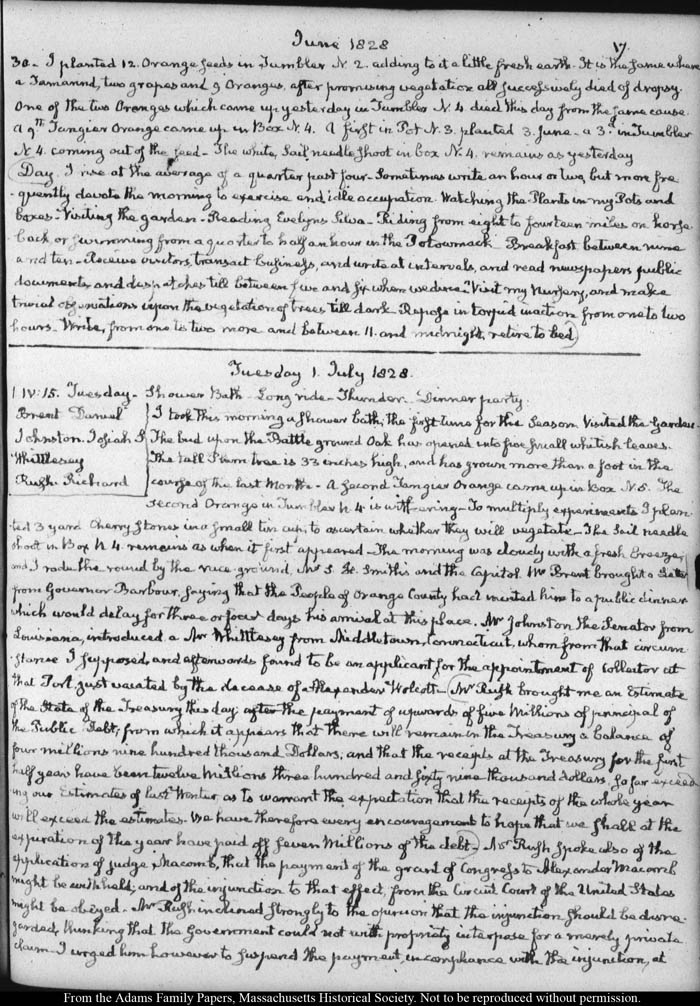 View full, authoritative transcriptions with page images of the diaries at John Quincy Adams Digital Diary part of the Primary Source Cooperative at the MHS.