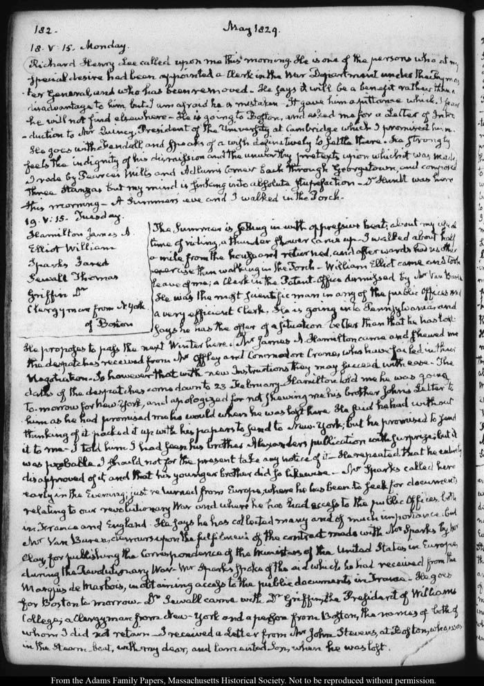 John Quincy Adams diary 36, 1 January 1825 - 30 September 1830, page 182