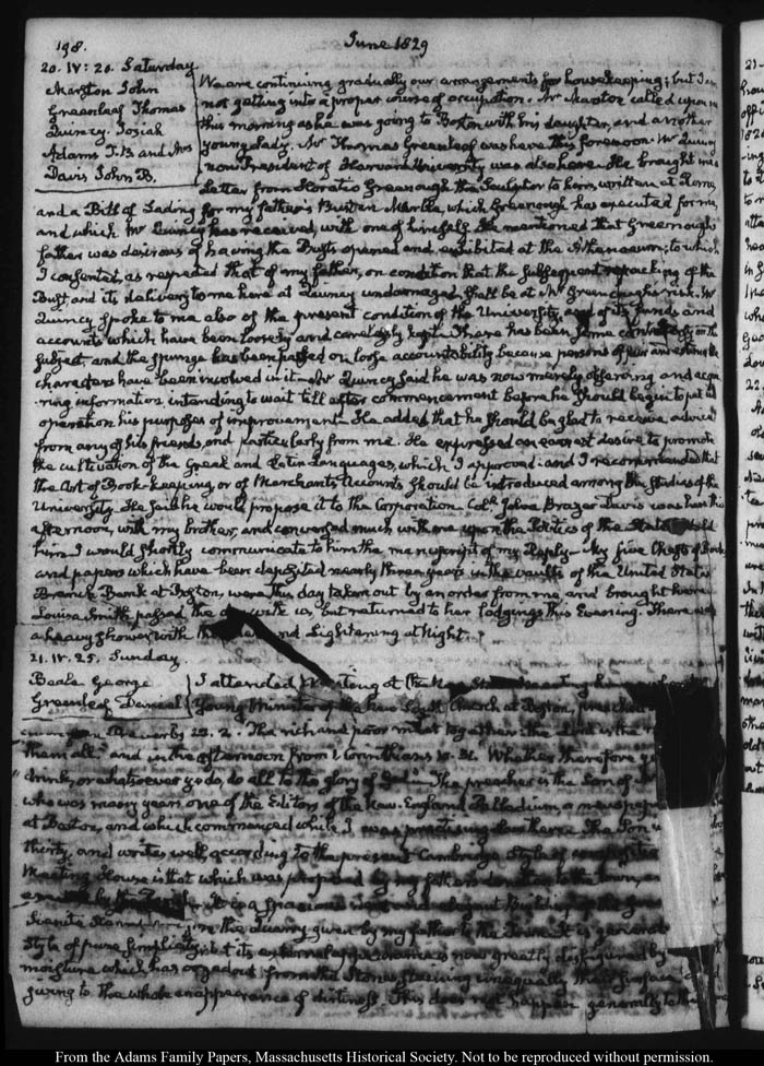 View full, authoritative transcriptions with page images of the diaries at John Quincy Adams Digital Diary part of the Primary Source Cooperative at the MHS.
