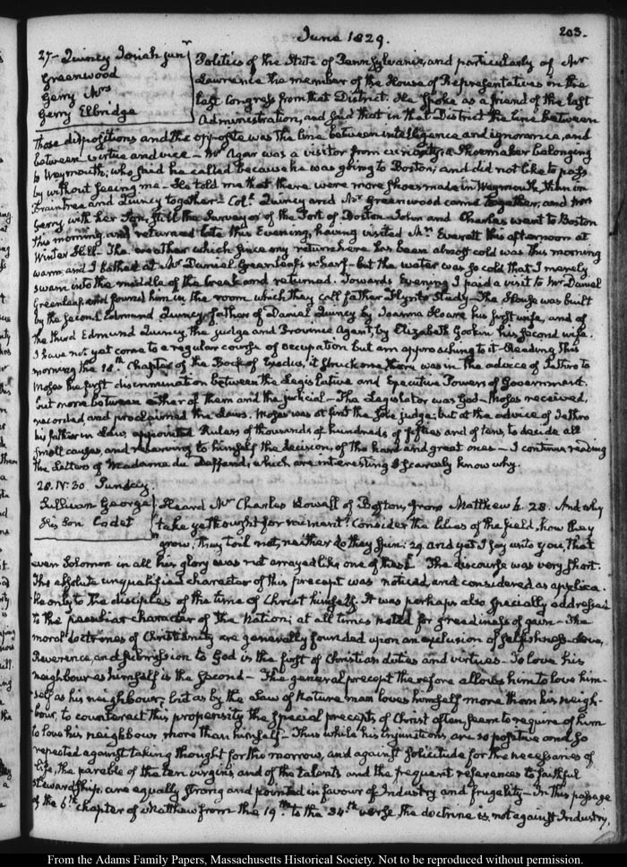 John Quincy Adams diary 36, 1 January 1825 - 30 September 1830, page 203
