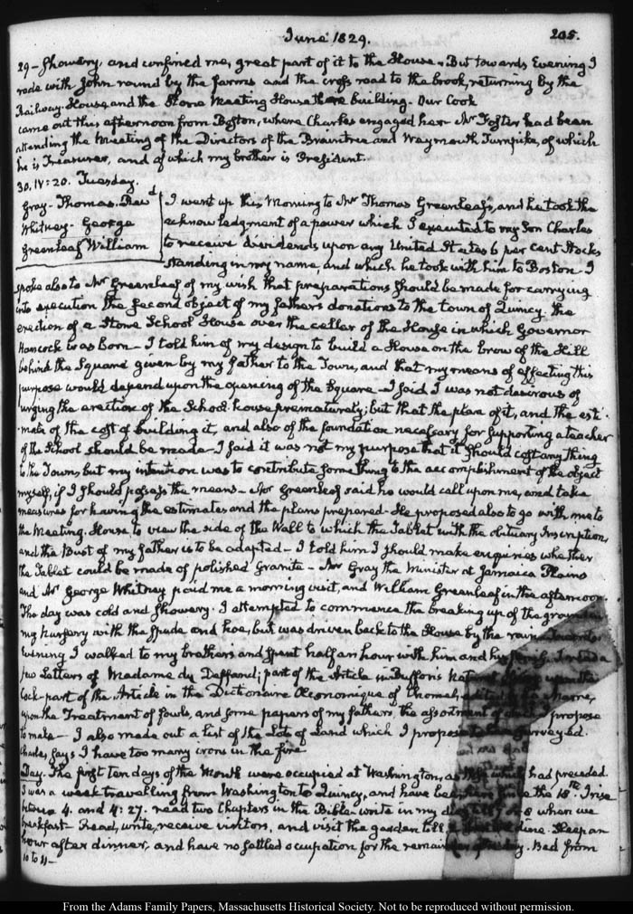 View full, authoritative transcriptions with page images of the diaries at John Quincy Adams Digital Diary part of the Primary Source Cooperative at the MHS.