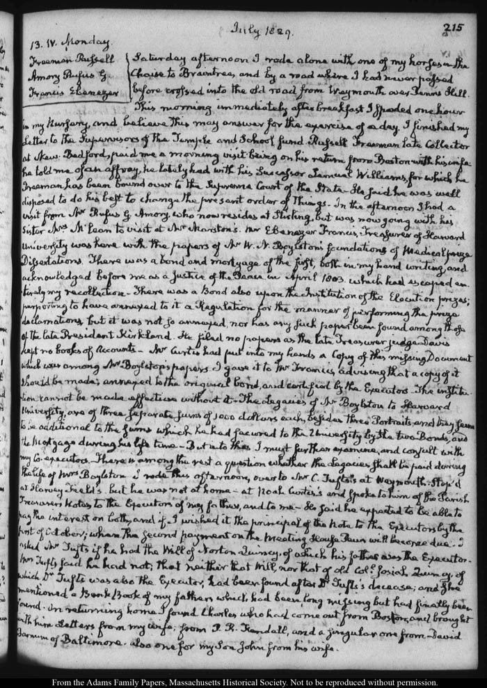 John Quincy Adams diary 36, 1 January 1825 - 30 September 1830, page 215