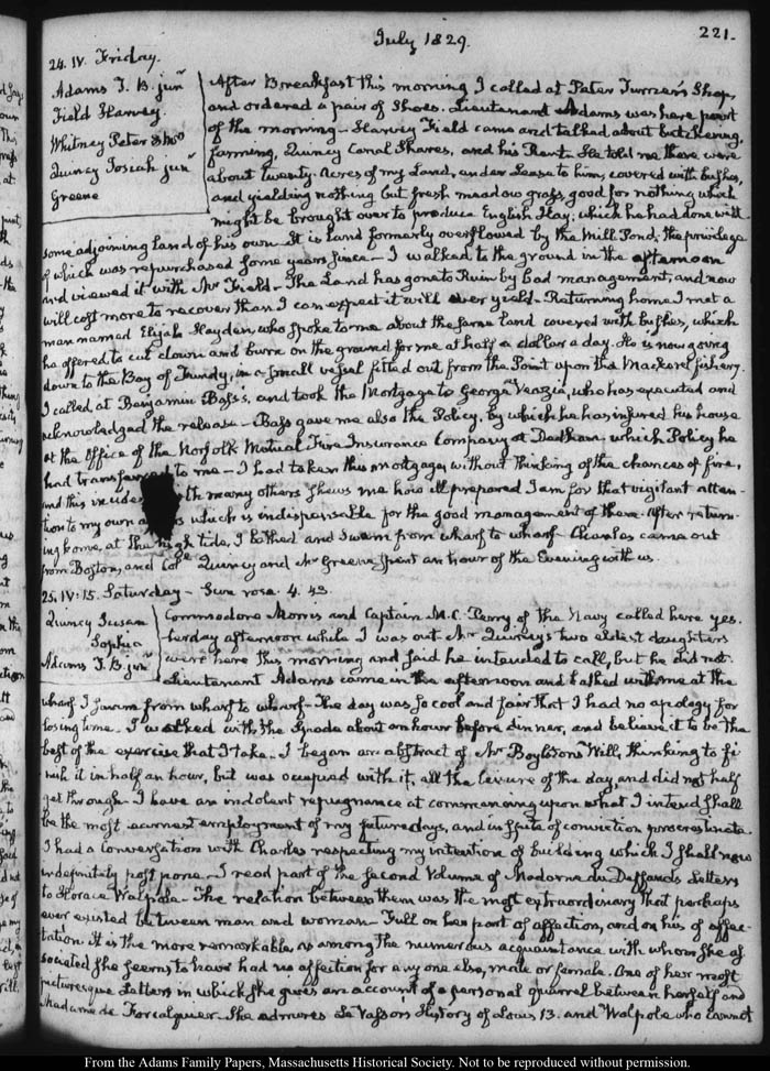 John Quincy Adams diary 36, 1 January 1825 - 30 September 1830, page 221