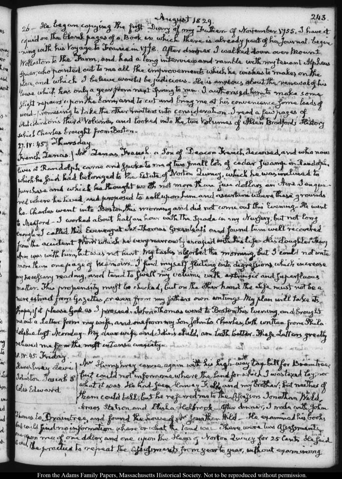 John Quincy Adams diary 36, 1 January 1825 - 30 September 1830, page 243