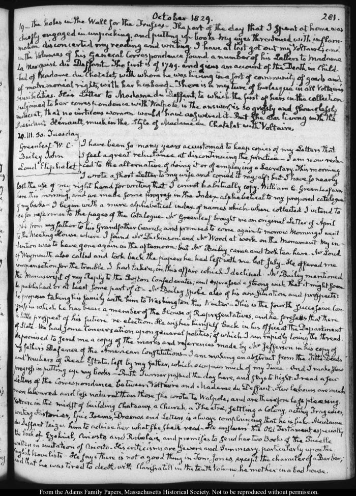 John Quincy Adams diary 36, 1 January 1825 - 30 September 1830, page 281